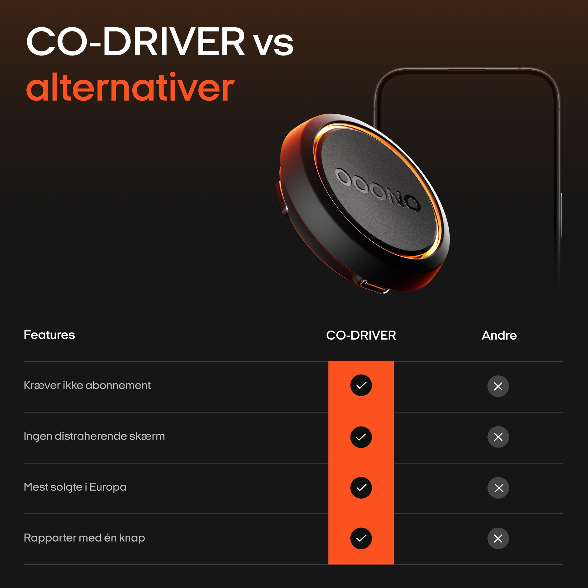 Nå ja, og så fordi du ikke skal betale et abonnement med vores CO-DRIVERs. Det er da også meget fedt.